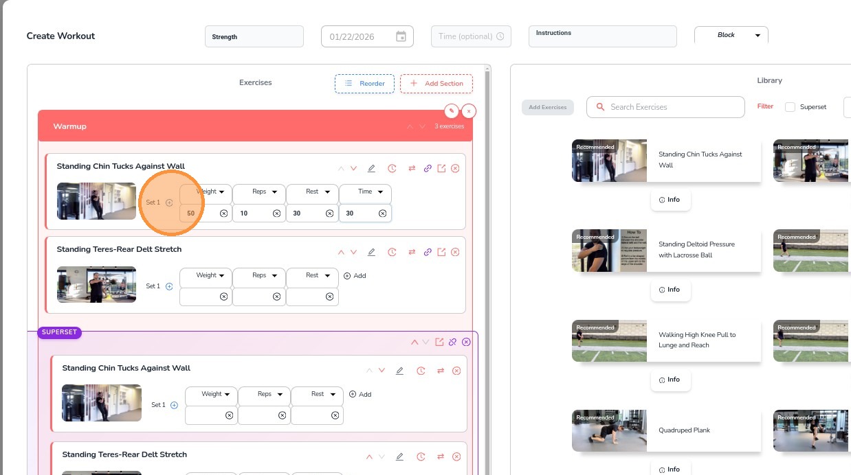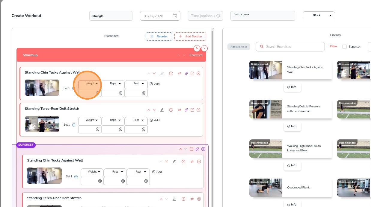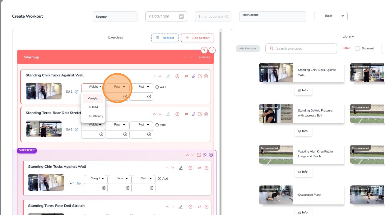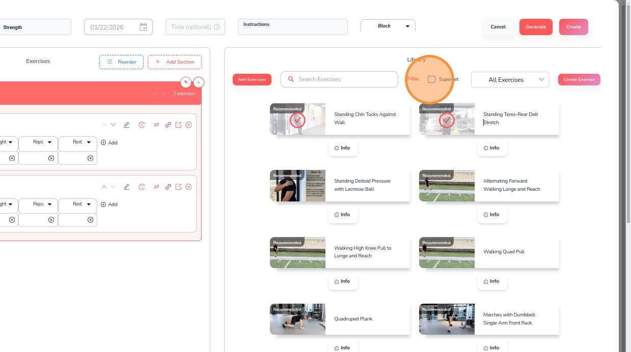 11. For Supersets, select multiple exercises