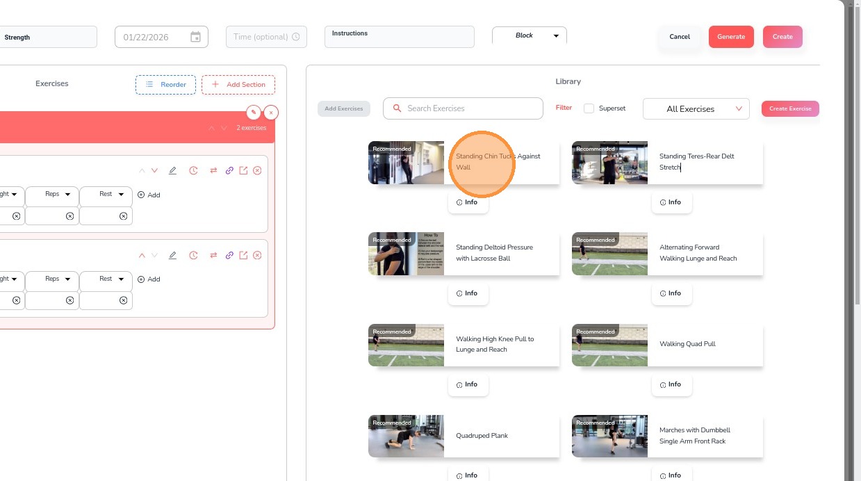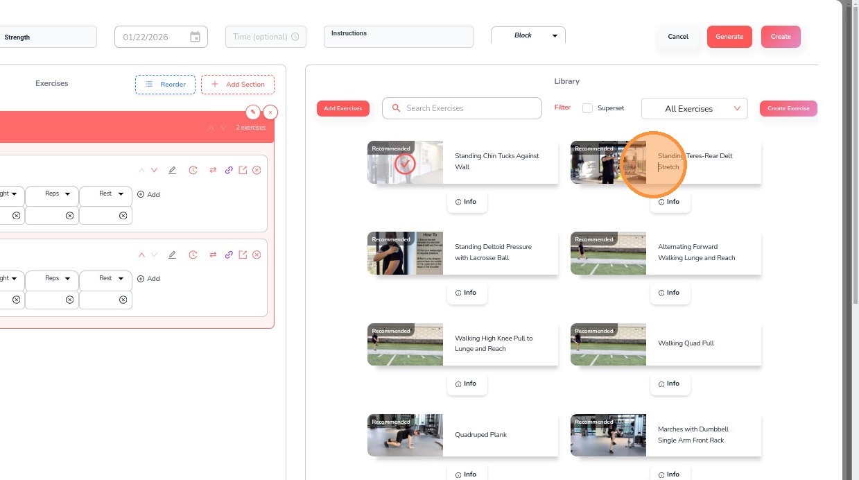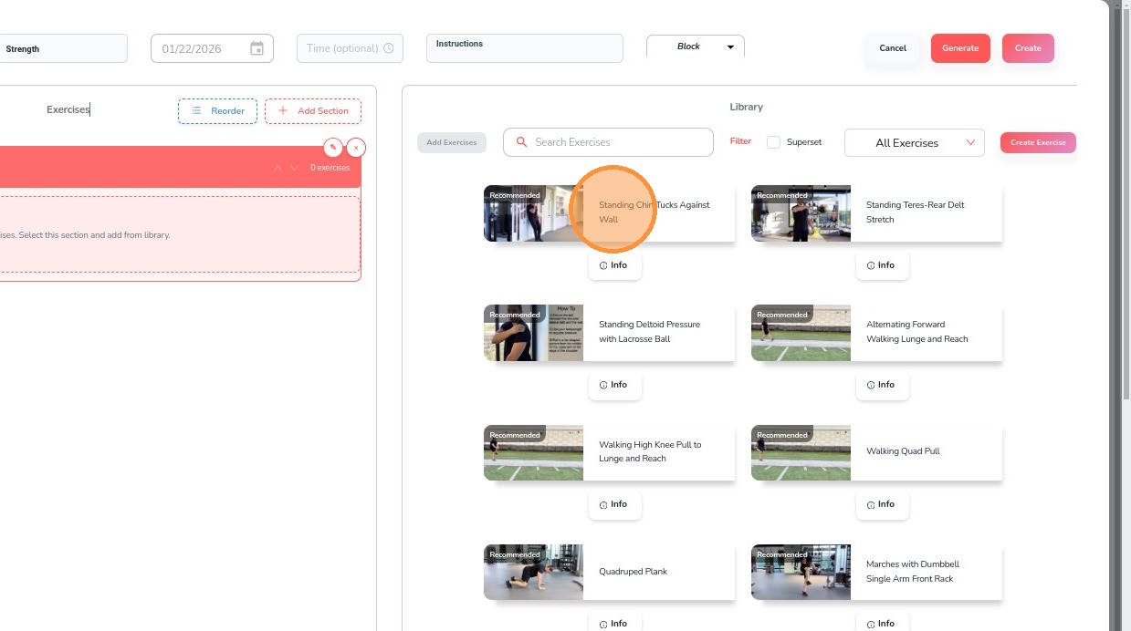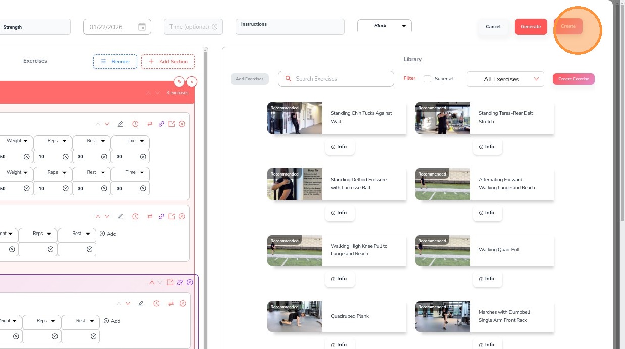 18. Once all exercises are added, click Create