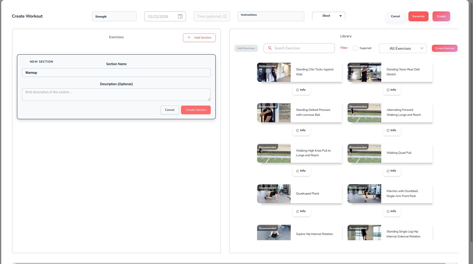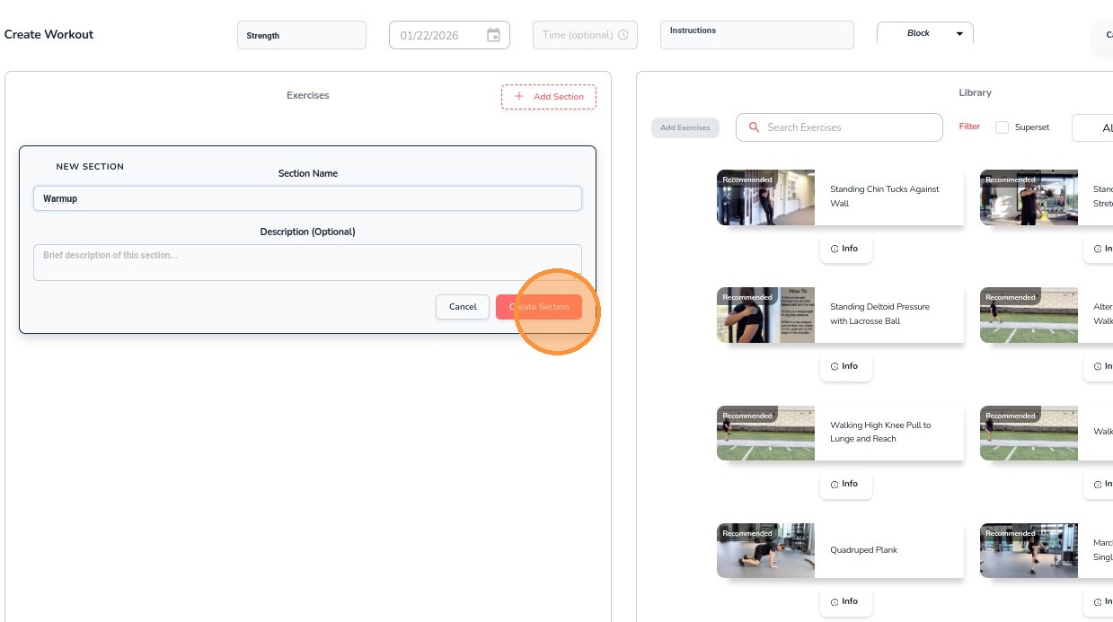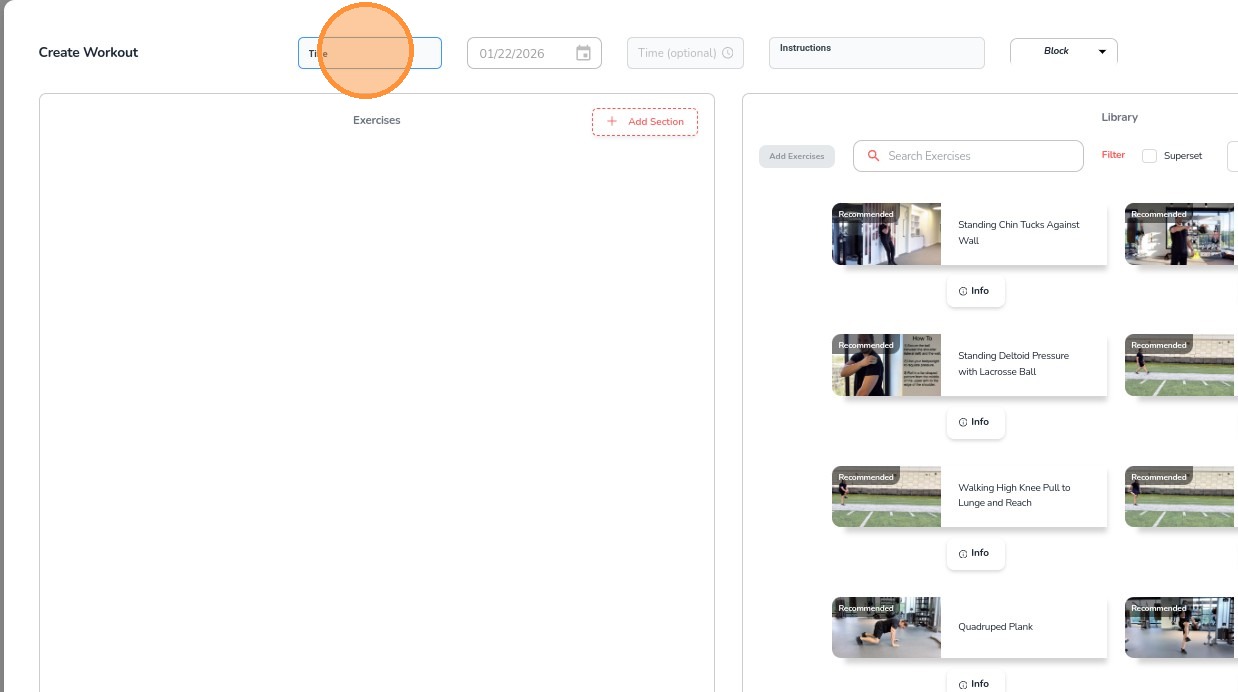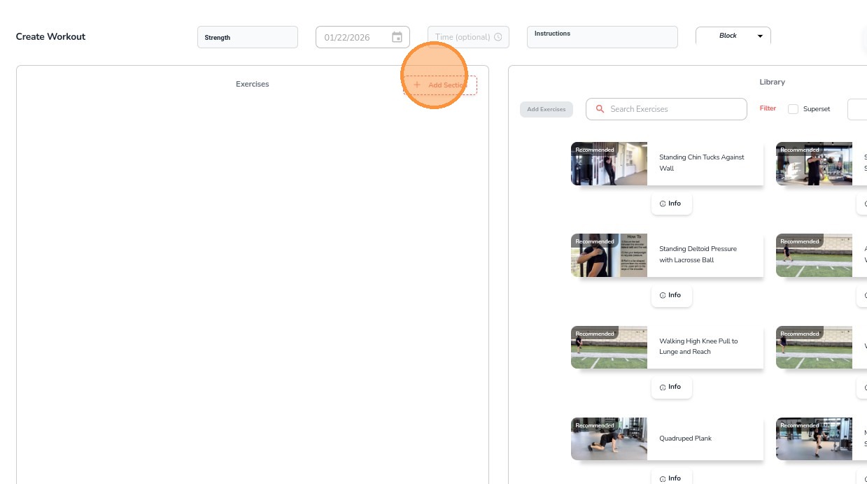6. To begin adding exercises, click Add Section