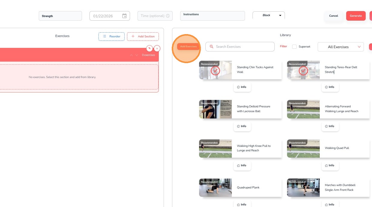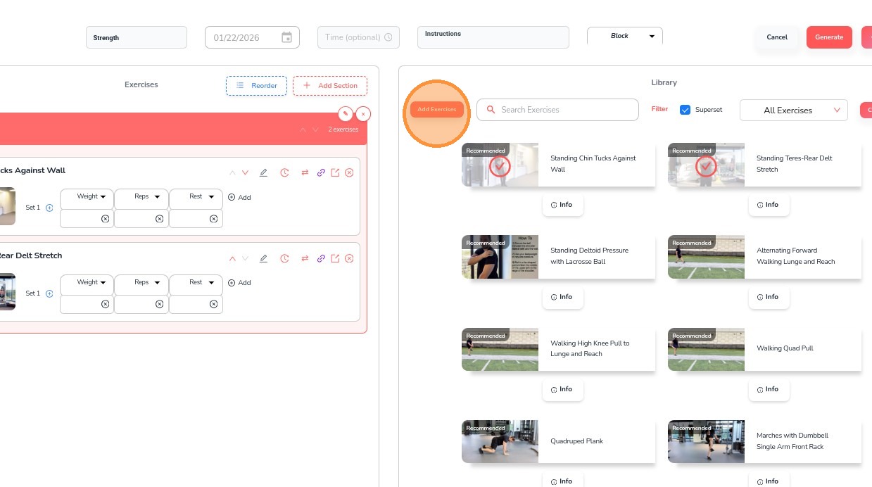 13. Click Add Exercises