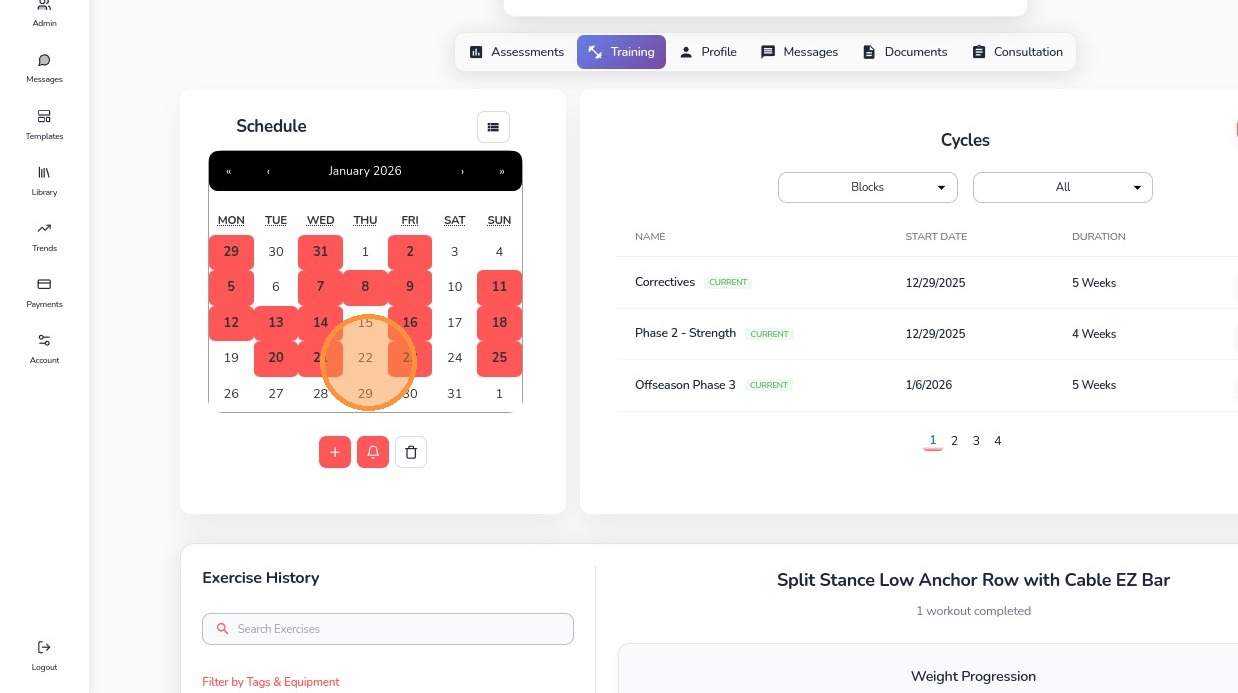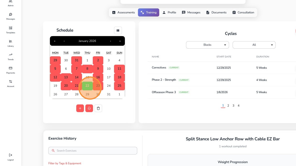 19. To view a created workout, select the date on the calendar